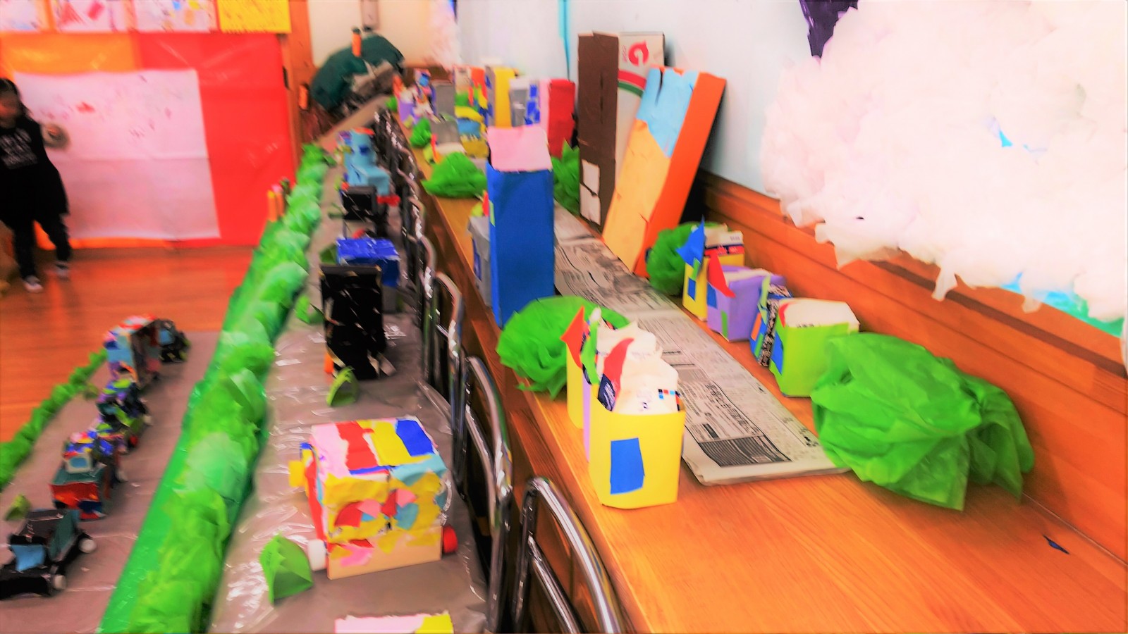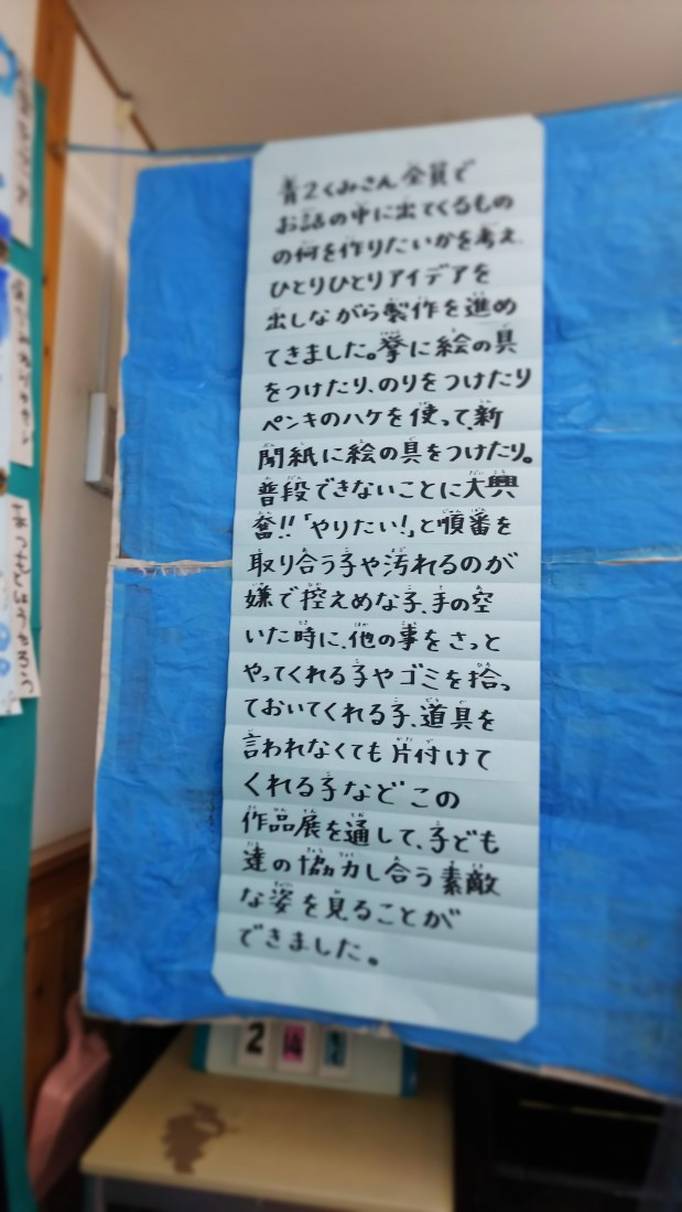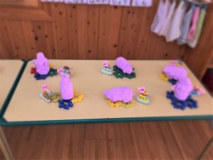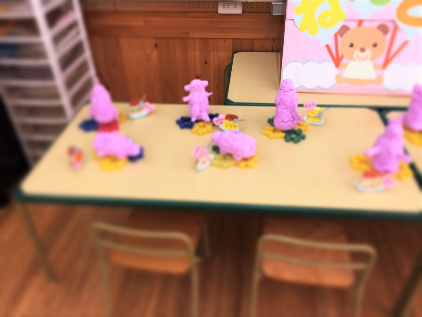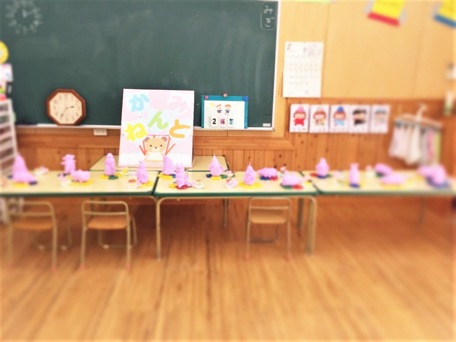 各クラスで粘土や折り紙、絵の具などで